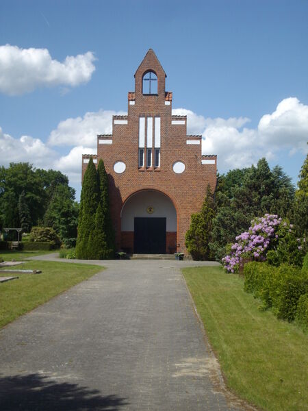 Die 1910 erbaute Kapelle wurde 1999 um einen Anbau im nördlichen Teil und ein Nebengebäude erweitert. Hierdurch wurde die Zahl der Sitzplätze von ursprünglich 80 auf jetzt ca. 160 verdoppelt. Die Form des Kreuzganges bietet die Möglichkeit, die Kapelle, je nach Ort der Bestattung nach Westen, Norden oder Osten zu verlassen. Im Nebengebäude stehen neben Toiletten und Baggergarage 2 Abschiedsräume zur Verfügung. Diese sind zwar klein, bieten aber den Angehörigen die Möglichkeit, nach eigenem Ermessen – sie bekommen einen Schlüssel ausgehändigt – ihre hier aufgebahrten Verstorbenen aufzusuchen und Abschied zu nehmen.