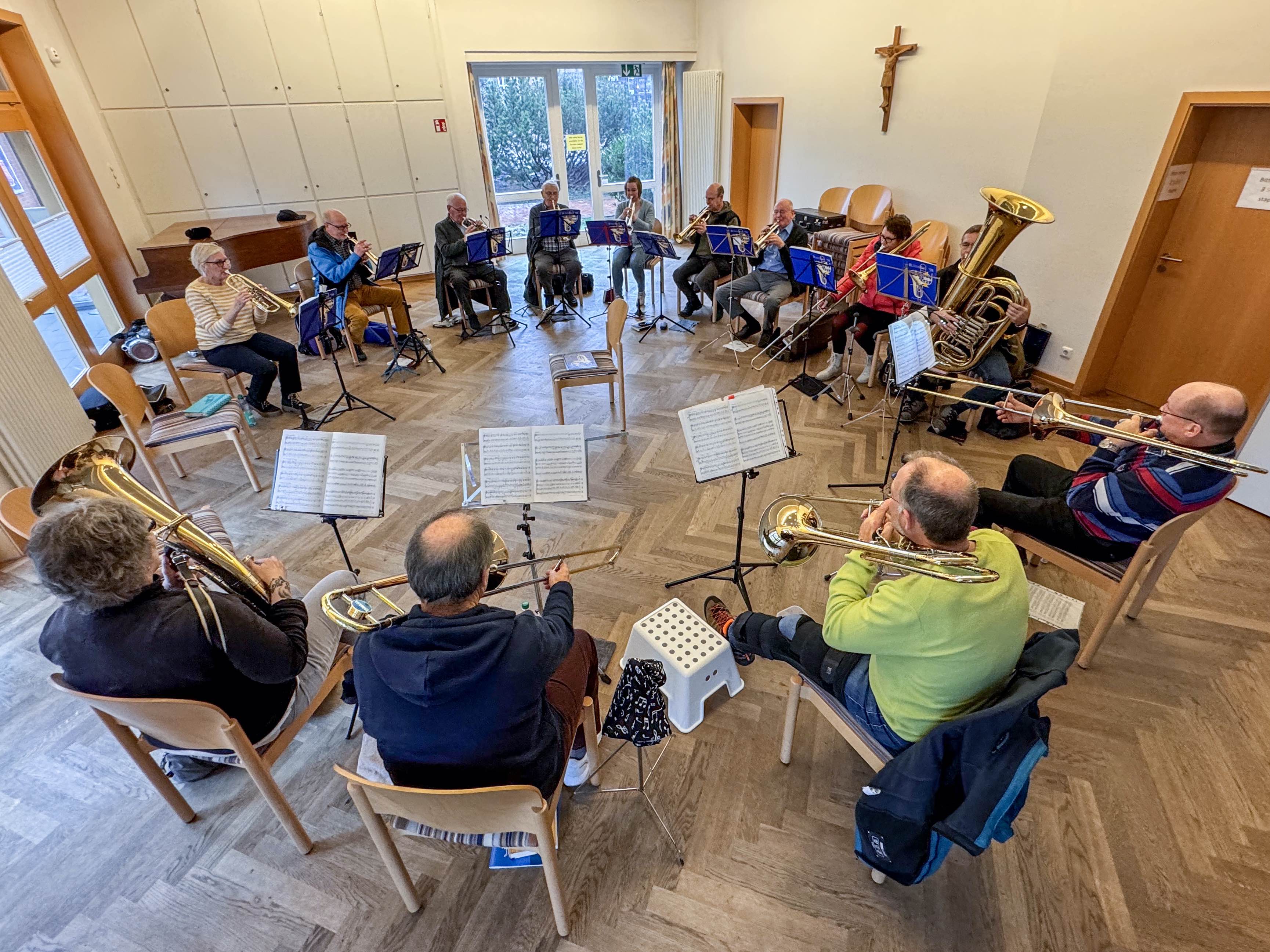 Einmal im Monat wird es Mittwochvormittag laut im Salzhäuser Gemeindehaus. Denn dann erklingen Choräle, klassische Musik und moderne Töne. Unter der Leitung von Uwe Hartmann treffen sich aktuell rund 15 Bläser aus der Region, um gemeinsam zu musizieren.