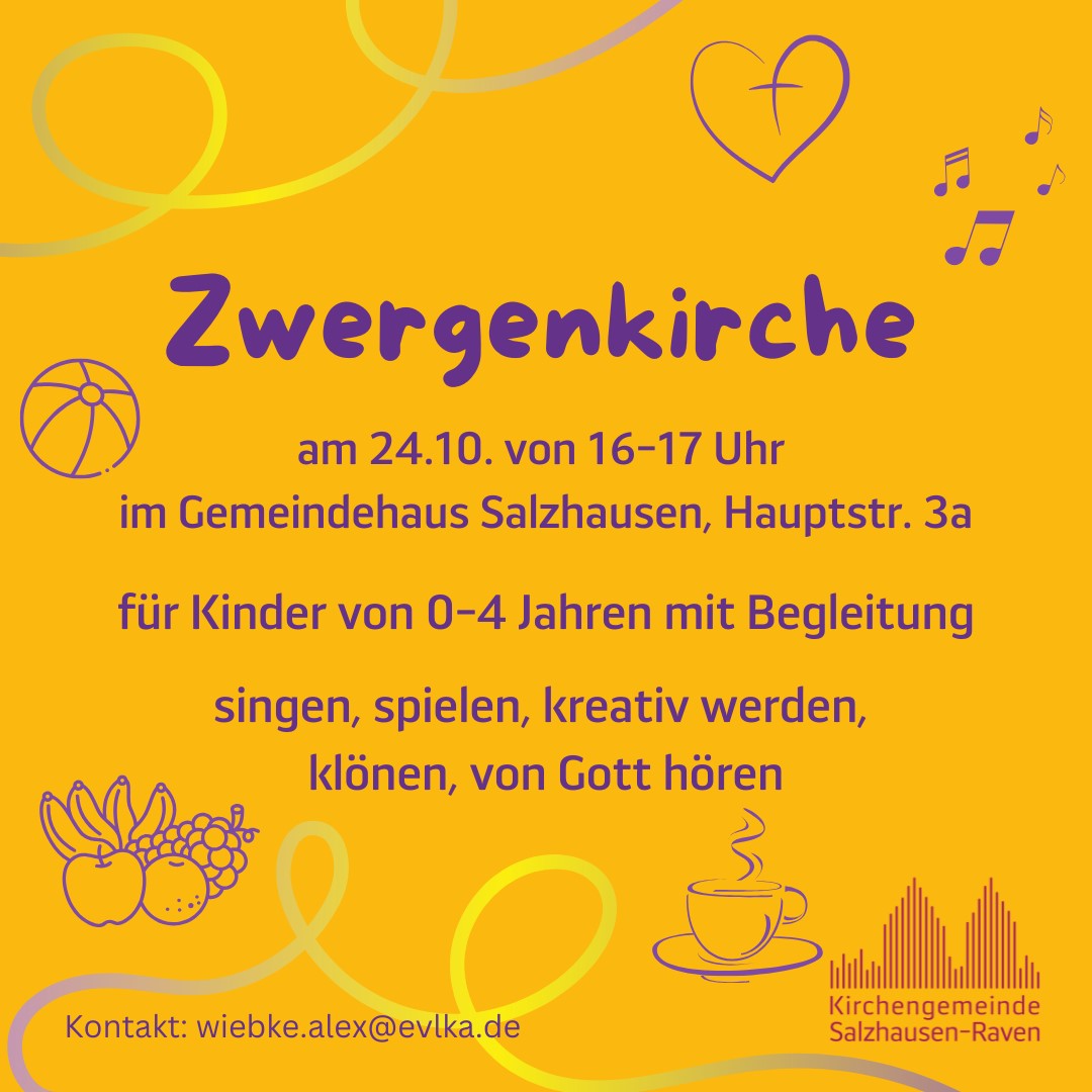 In der „Zwergenkirche“ treffen wir uns für eine Stunde zum Singen, Spielen, Naschen und Klönen. Es gibt jedes Mal ein Thema und ein Kreativangebot. Wir sind ein kleines Team, dass sich neu zusammengefunden hat, und sind ganz gespannt, wer kommt.